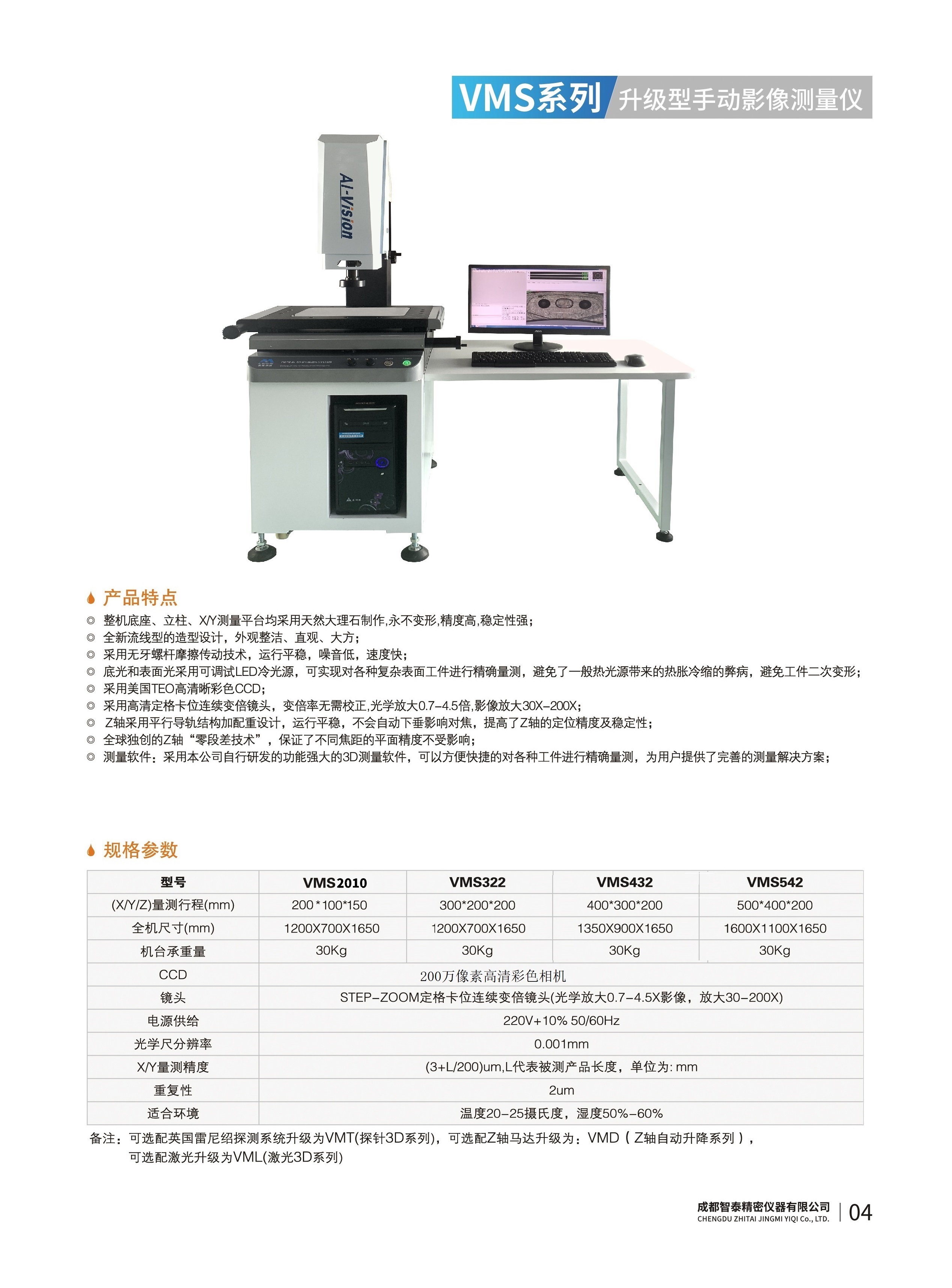 成都智泰精密儀器有限公司專(zhuān)注于精密測(cè)量?jī)x器,人工智能,智能制造領(lǐng)域,專(zhuān)業(yè)從事智能視覺(jué)自動(dòng)化檢測(cè)解決方案的貿(mào)易型企業(yè)。公司成立于2011年,位于天府之國(guó)成都,現(xiàn)有行業(yè)精英十余人,辦公倉(cāng)儲(chǔ)面積200余平米。 公司主要產(chǎn)品為精密光學(xué)影像測(cè)量?jī)x,精密輪廓形狀測(cè)量?jī)x,精密機(jī)器人定位系統(tǒng),精密智能視覺(jué)尺寸檢測(cè)儀器,精密表面缺陷智能檢測(cè)設(shè)備,工業(yè)工程特種機(jī)器人。 公司憑借過(guò)硬的技術(shù)實(shí)力和產(chǎn)品方案,率先進(jìn)入智能視覺(jué)自動(dòng)化檢測(cè)領(lǐng)域,推廣以精密智能視覺(jué)自動(dòng)化檢測(cè)為基礎(chǔ)的機(jī)器人自動(dòng)化應(yīng)用,公司不斷整合上下游的資源,擁有巨大的全產(chǎn)業(yè)鏈優(yōu)勢(shì)。客戶(hù)群體覆蓋了我國(guó)精密制造業(yè)的多數(shù)領(lǐng)域,包括航空、航天、軍工、汽車(chē)、新能源、光伏、食品,精密電子、精密機(jī)械、模具、PCB、LCD、五金、塑膠、醫(yī)療、教育、計(jì)量及科研院所等行業(yè)。 公司創(chuàng)新的產(chǎn)品能滿(mǎn)足生產(chǎn)與制造行業(yè)客戶(hù)的要求,訓(xùn)練有素的工程師能及時(shí)提供多種技術(shù)服務(wù),如解...